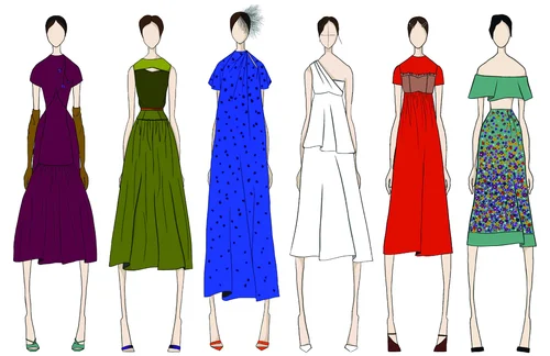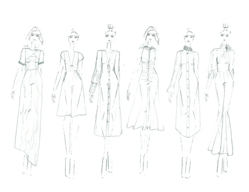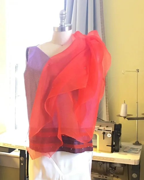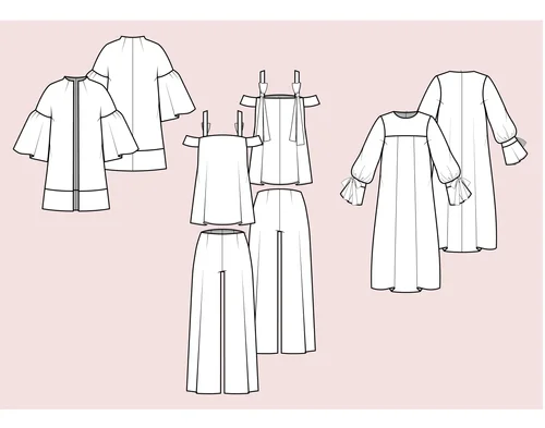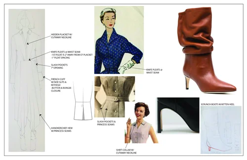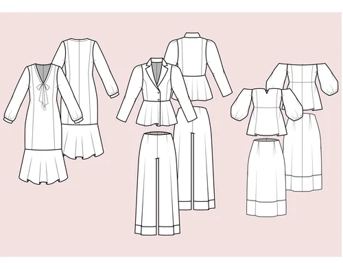 A compilation of physical garments created using both flat pattern making and draping techniques.