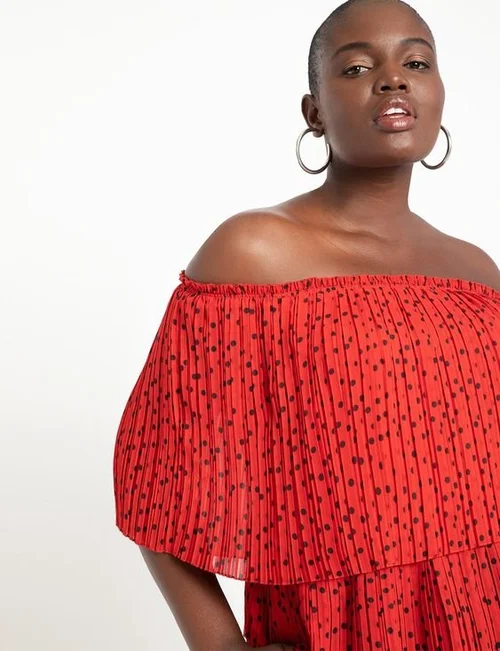 PLEATED OFF THE SHOULDER BLOUSE - ELOQUII