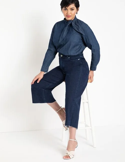 CHAMBRAY TIE NECK BLOUSE - ELOQUII